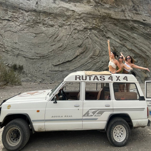 Embárcate en una apasionante expedición en 4×4 para explorar los paisajes más espectaculares y salvajes del Parque Natural Cabo de Gata-Níjar, el Desierto de Tabernas y las icónicas playas de Mónsul y Genoveses. Con salidas desde San José, Níjar o el propio Tabernas, nuestras rutas te ofrecen una experiencia inmersiva a través de escenarios únicos donde la naturaleza se funde con la historia y la aventura.